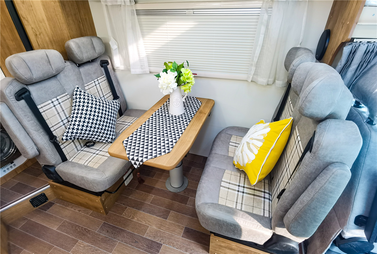 | 正副駕駛椅包 (中間菱形格) | 豪華衛(wèi)浴間 (ABS吸塑工藝) | 升降桌板(進(jìn)口單腿) | ||||||